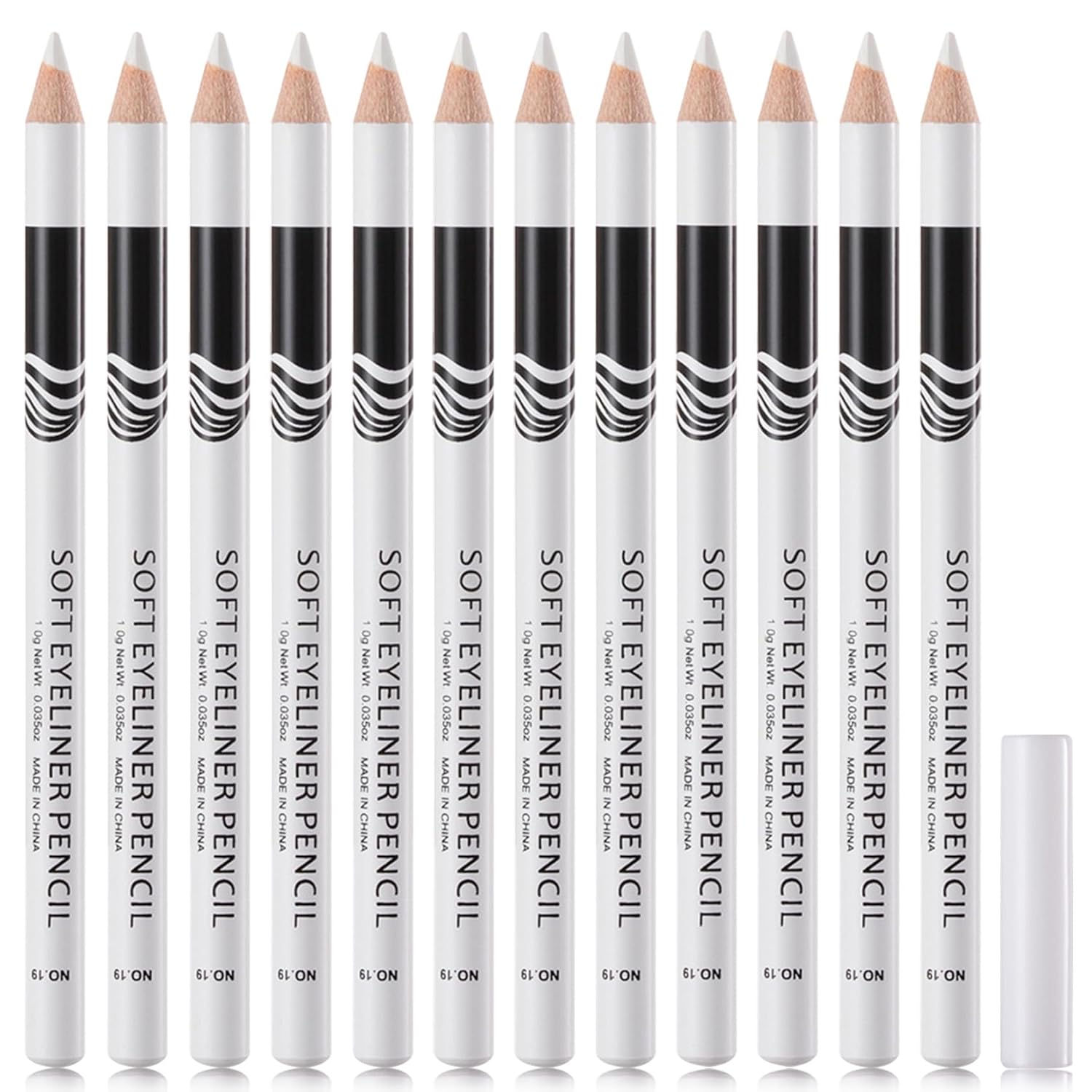12 PCS White Eyeliner Pencils,Professional Long Lasting Waterproof White Makeup Pencils,Highly Pigmented Inner Corner Eye Highlighter Eyeliner Pencil White Eye Liner Pen Sets for Women