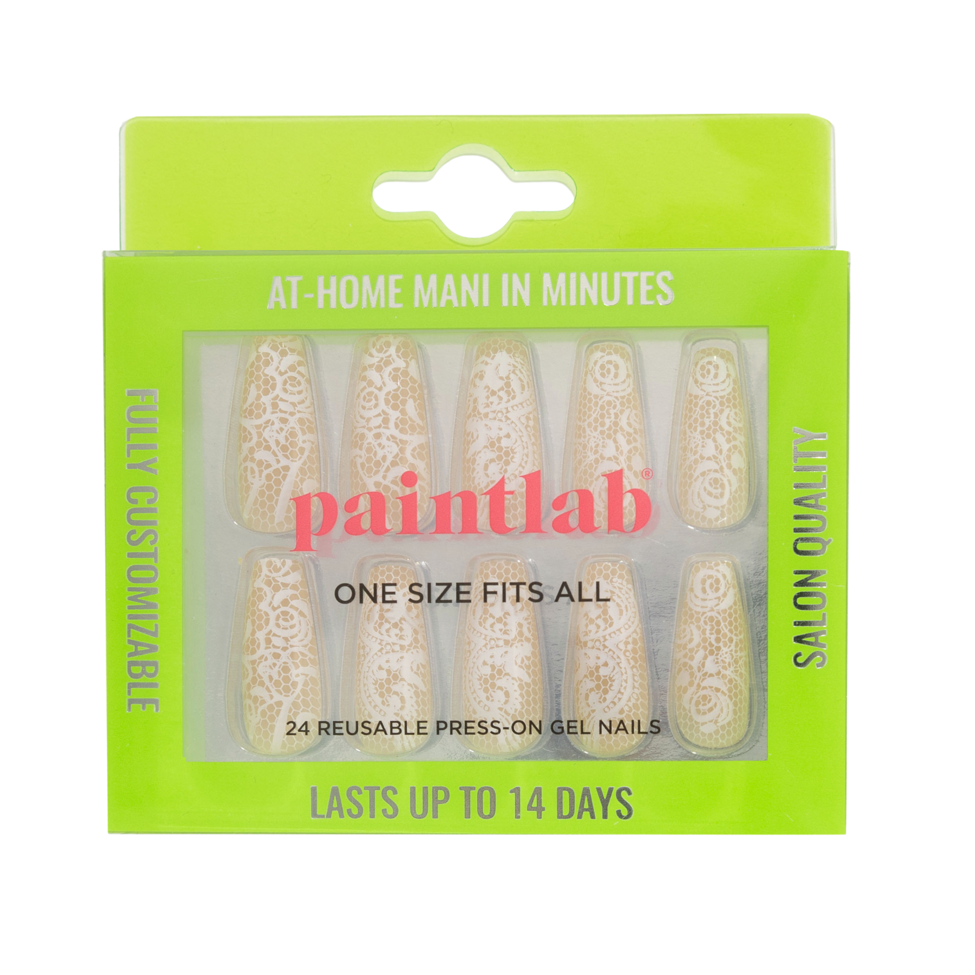 "Beige Lace" introduces a subdued beige tone that exudes refinement and sophistication. This neutral hue effortlessly complements any outfit or occasion. The long coffin-shaped nails are adorned with delicate lace patterns, adding a touch of intricacy and romance to your fingertips. Each nail is a canvas of detailed artistry. Let your fingertips become a canvas for timeless beauty, where classic meets contemporary.