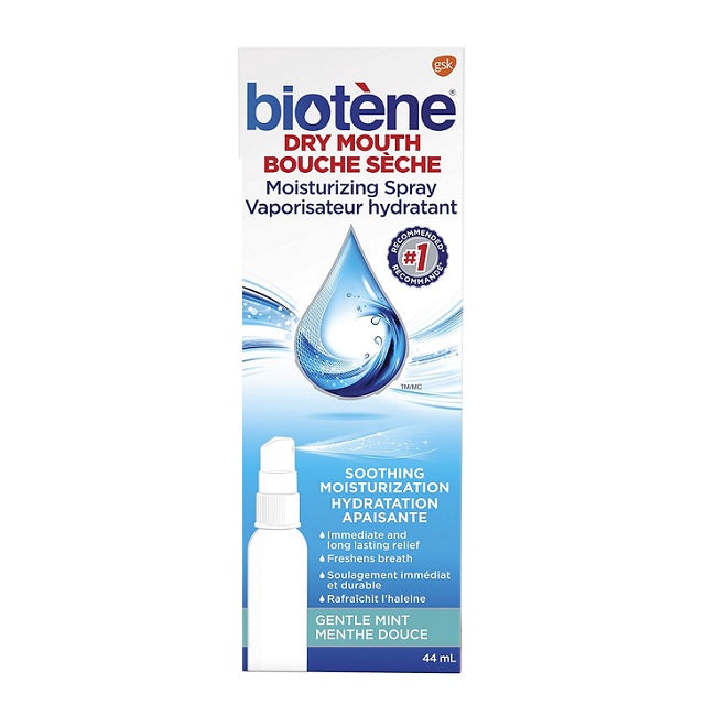 The Biotène Moisturizing Spray is discrete, lightweight, and simple to use. Breath freshening is aided by the alcohol-free Biotène Moisturizing Spray. A quick, on-the-go solution that soothes, moisturizes and freshens your breath instantly. biotène Moisturizing Gentle Mint Spray is specially formulated to help protect your mouth from drying out.