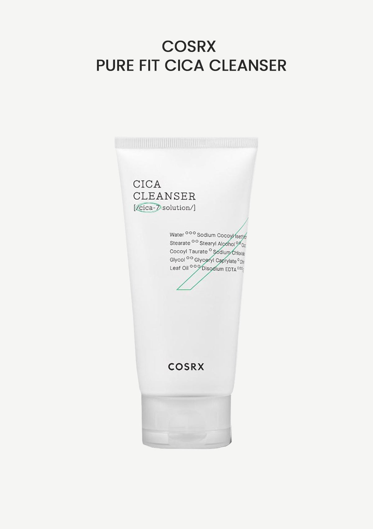 The Cosrx Pure Fit Cica Cleanser is a low pH Cica Cleanser that mildly cleanses sensitive skin with a rich and gentle foam.