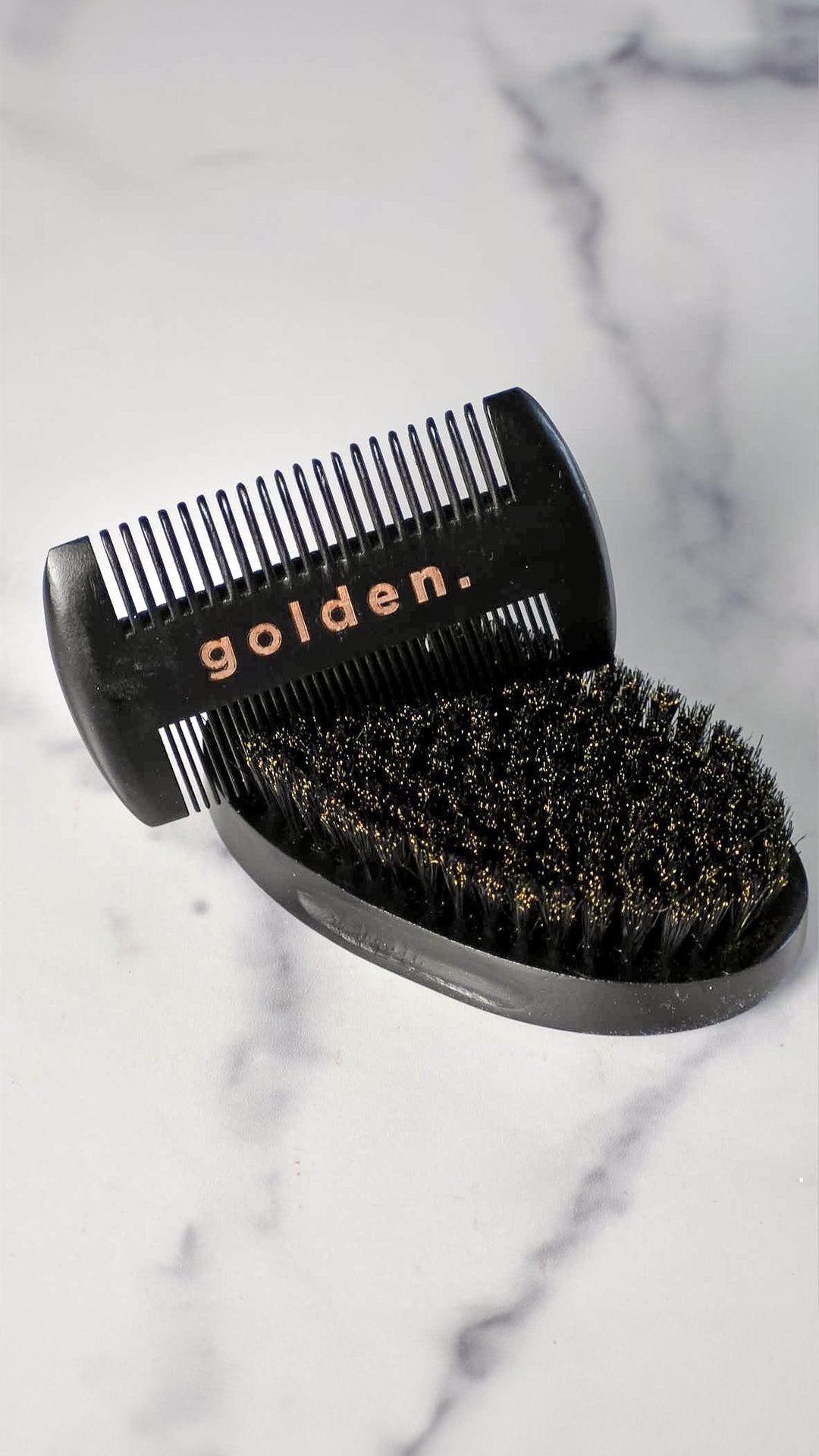 Inside the kit: A Beard Comb (the detangler of dreams) and a Beard Brush (the stimulator of growth)